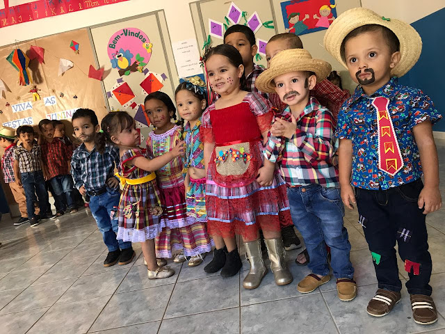 As crianças foram caracterizados de matuto e fizeram uma bonita festa