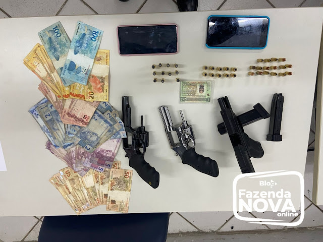 Com o grupo também foram apreendidos cinco aparelhos celulares, dois revólveres calibre .38, uma pistola 9mm, 11 munições calibre.38, 10 munições.40 e 16 munições calibre 9mm, além de R$ 2.008,00, em espécie. A ocorrência foi registrada pela Delegacia de Polícia Civil de Santa Cruz do Capibaribe para serem tomadas as medidas legais cabíveis.